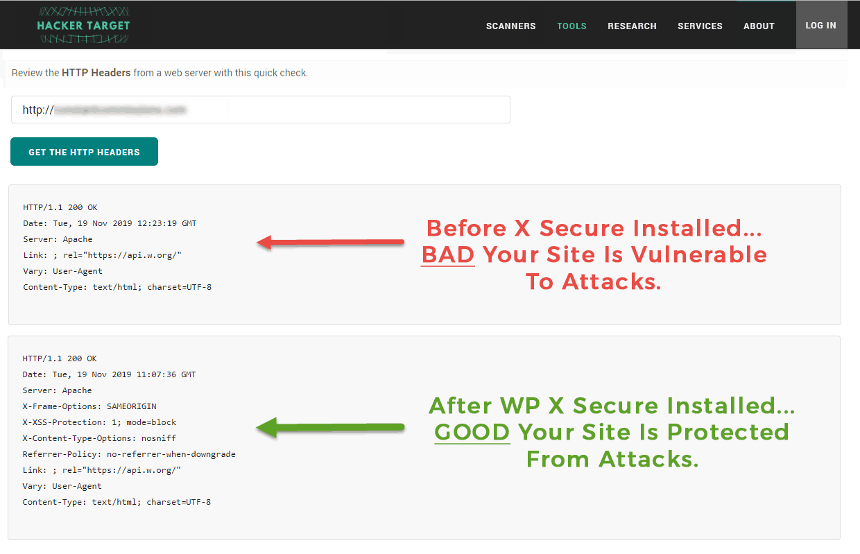 Prevent Content Sniffing through X-Content-Type-Options – WP X Secure sets X-Content-Type-Options which stops a browser from trying to MIME-sniff the content type and forces it to stick with the declared content-type which can lead to XXS attacks on your site.